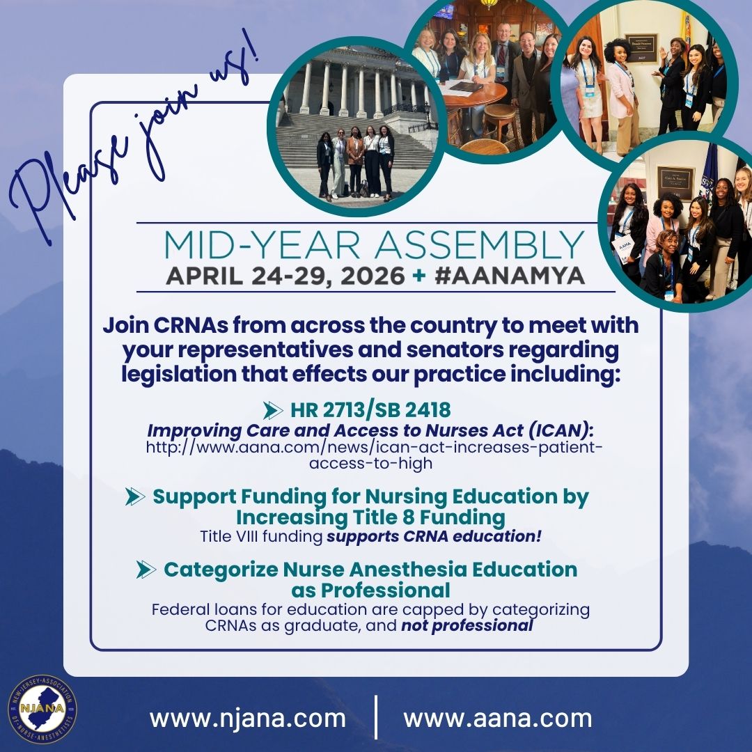 For more than 80 years, the New Jersey Association of Nurse Anesthetists (NJANA) has been dedicated to advancing the nurse anesthesia profession, protecting our members, and advocating for safe and accessible anesthesia care.